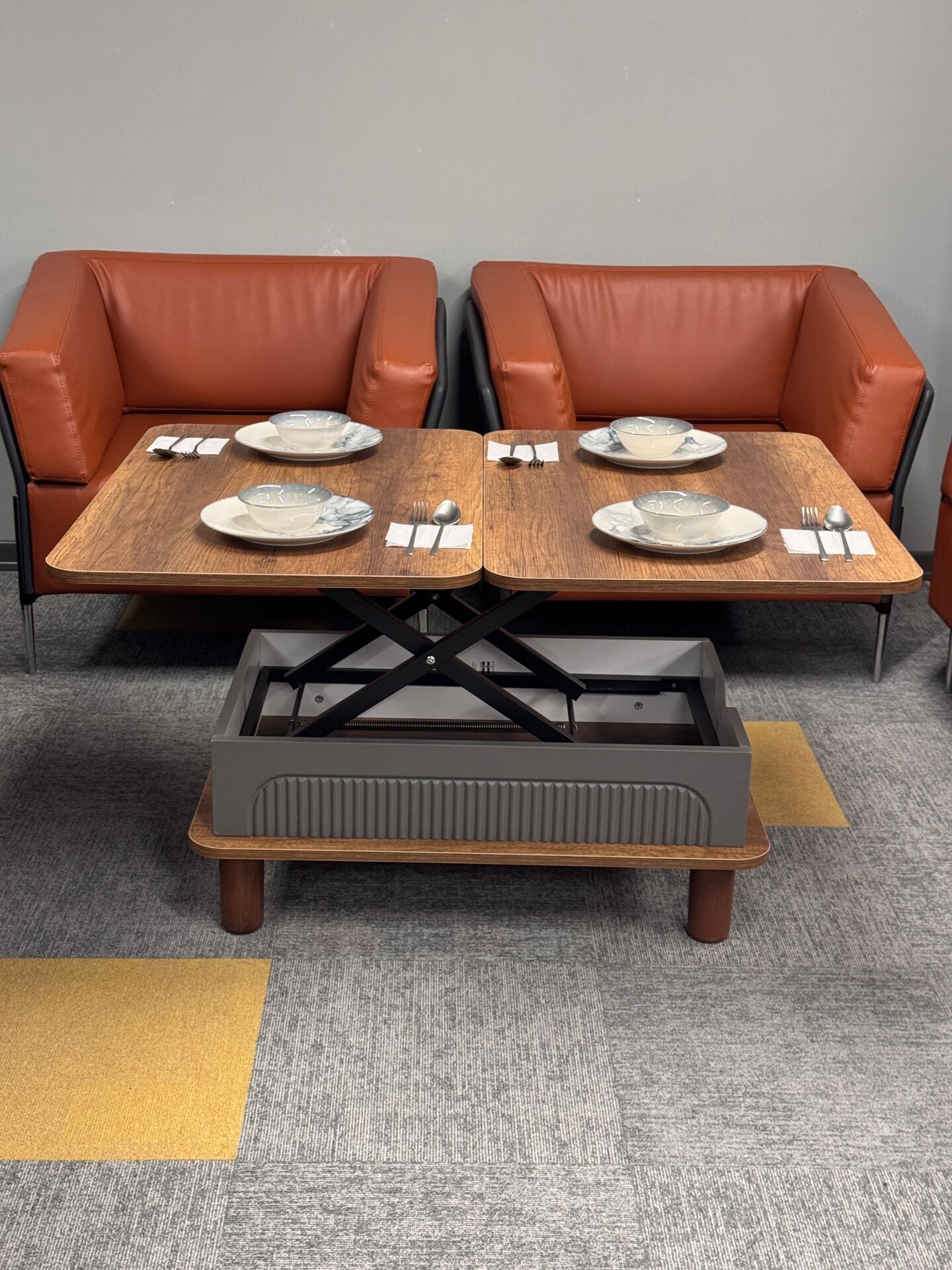 • Çok amaçlı kullanım (orta sehpa + çalışma/yemek masası)