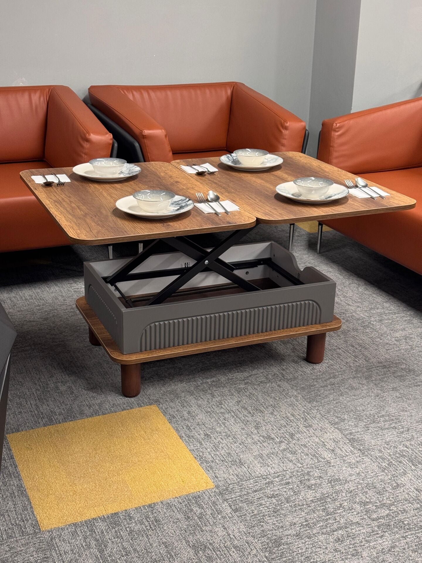 Akıllı mekanizması sayesinde sehpa üst tablası yukarı doğru yükselerek masa formuna dönüşür. İster kahve sehpası, ister çalışma masası, ister yemek masası olarak rahatlıkla kullanabilirsiniz.