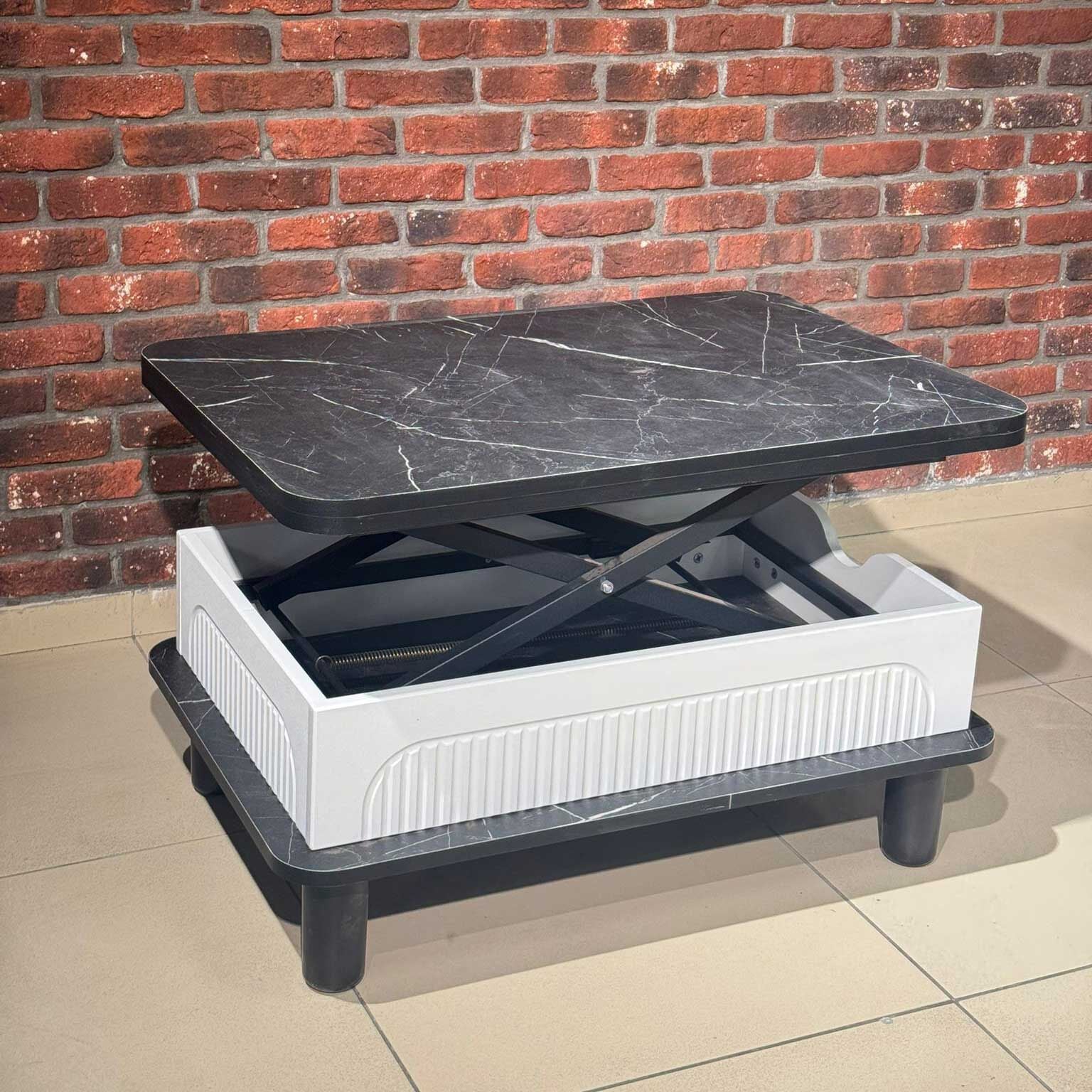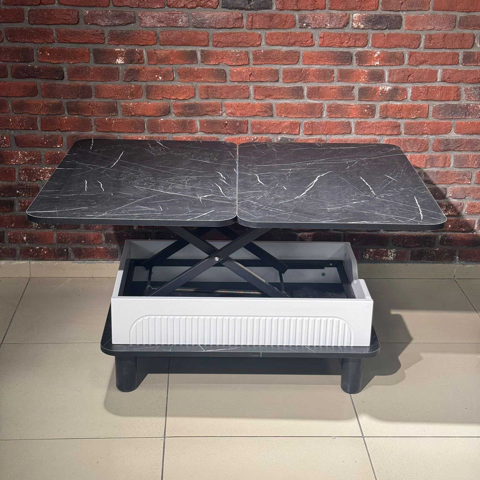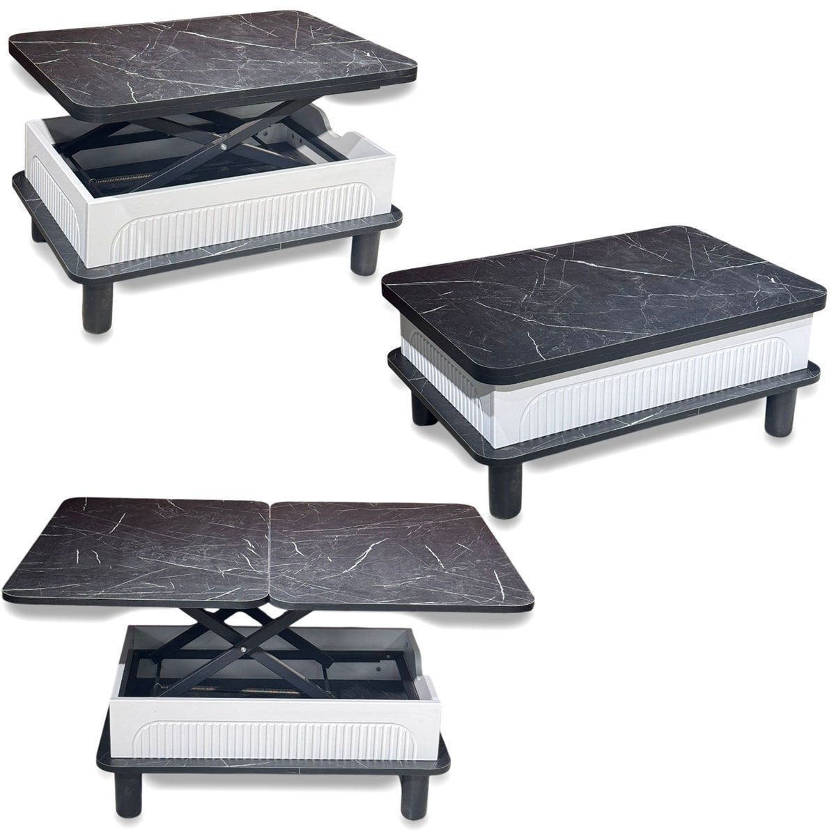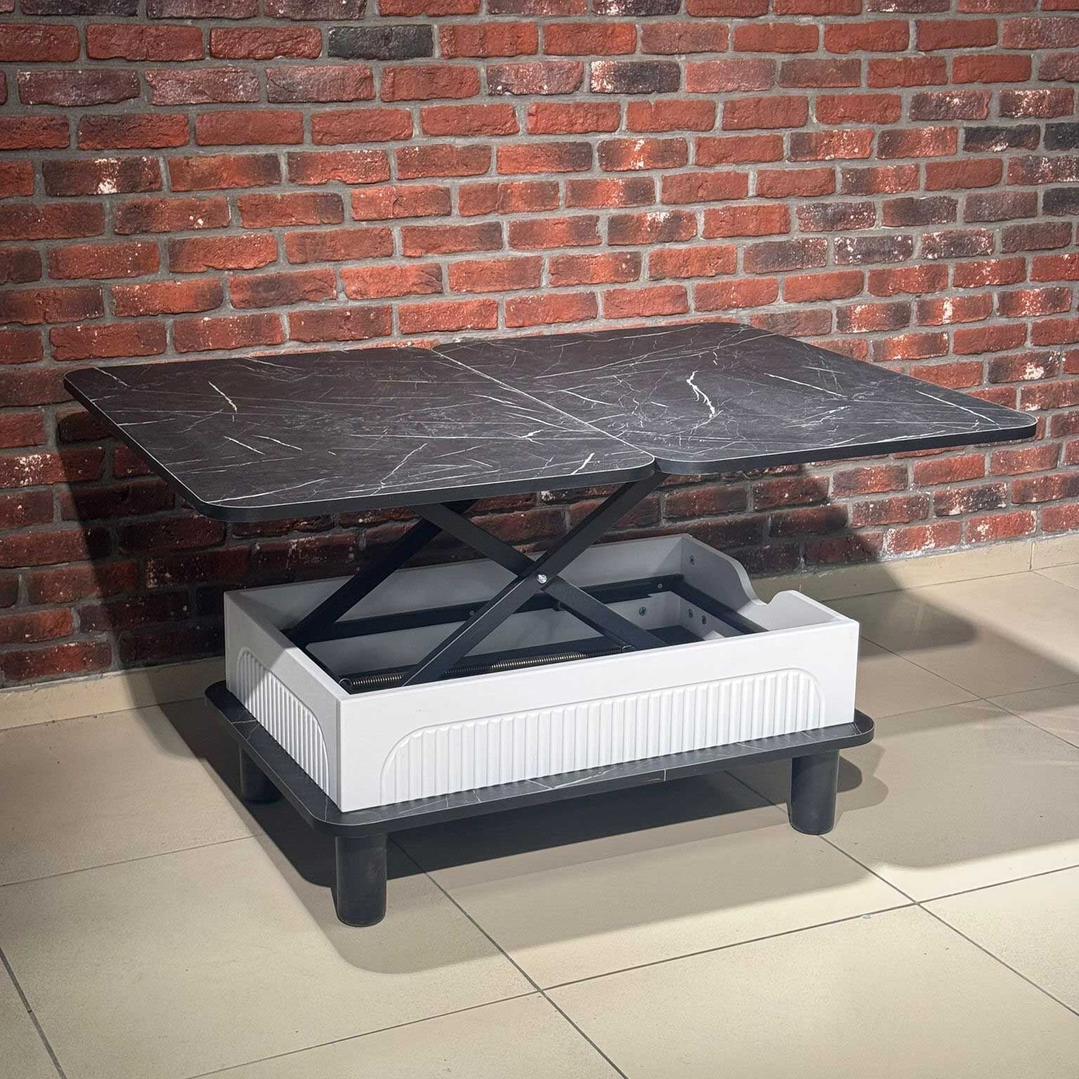 Bohem Kademeli Sihirli Akıllı Sehpa Orta Sehpa Siyah Mermer - Beyaz