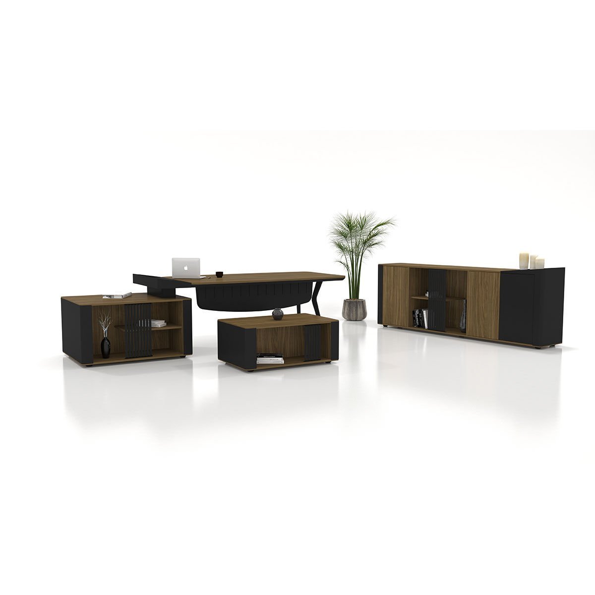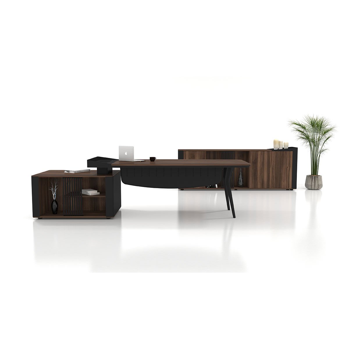 Moka Masa Takımı, modern çizgileri ve güçlü tasarım diliyle prestijli CEO ofisleri ve üst düzey yöneticiler için geliştirilmiş bir yönetici masa takımıdır. Şık detayları, fonksiyonel yapısı ve premium malzeme kalitesiyle ofisinize zarafet ve güç katarken, profesyonel bir çalışma alanı sunar.