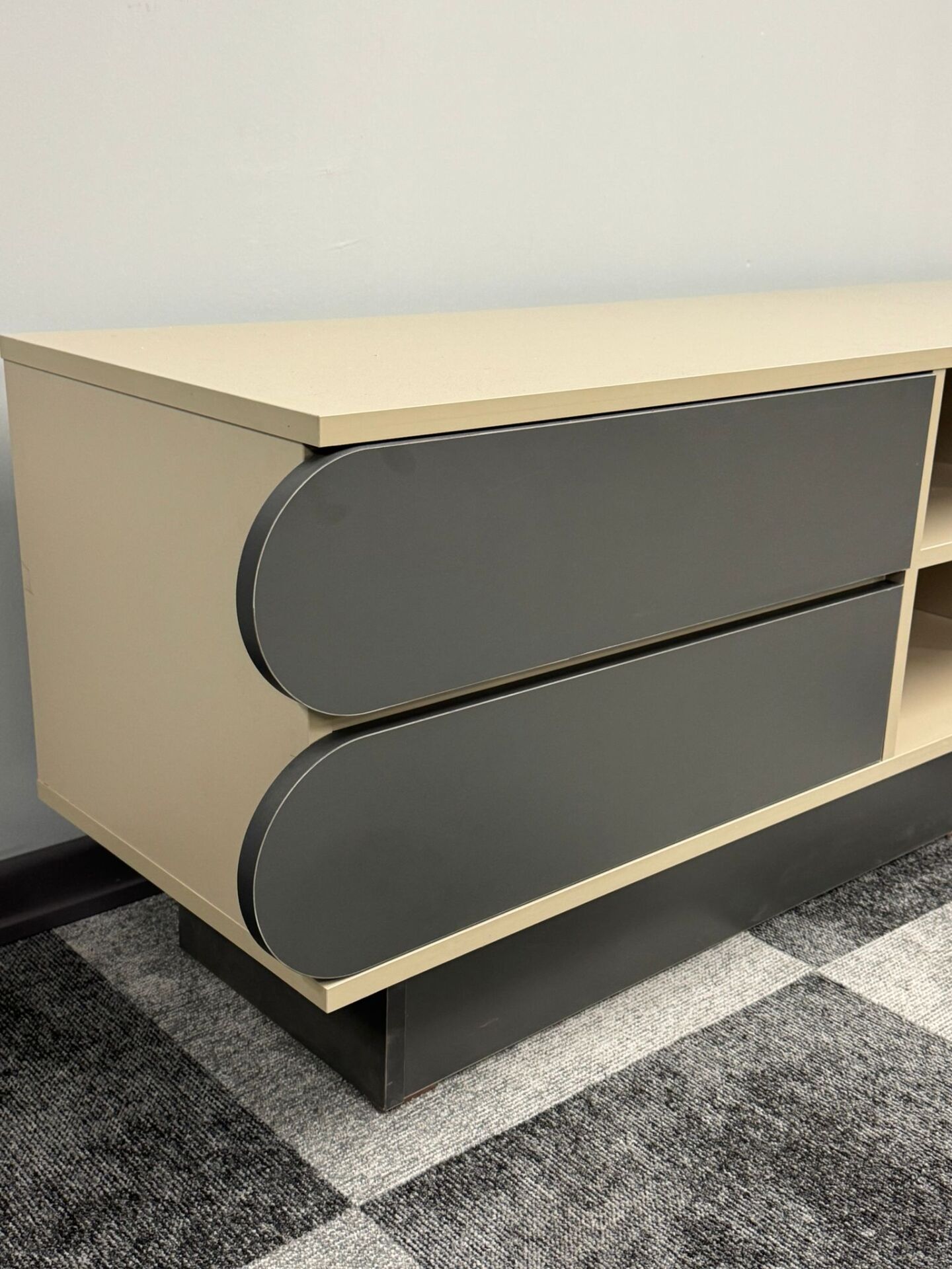 Minimalist çizgilere sahip bu özel tasarım ünite, hem estetik görünümüyle hem de kullanım kolaylığıyla dikkat çekiyor.