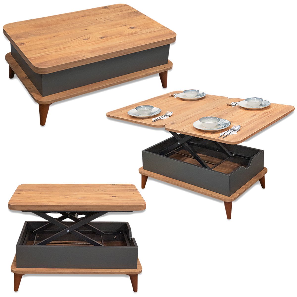 Smart Kademeli Sihirli Akıllı Sehpa Orta Sehpa Atlantik Çam - Antrasit Sabit Ayaklı