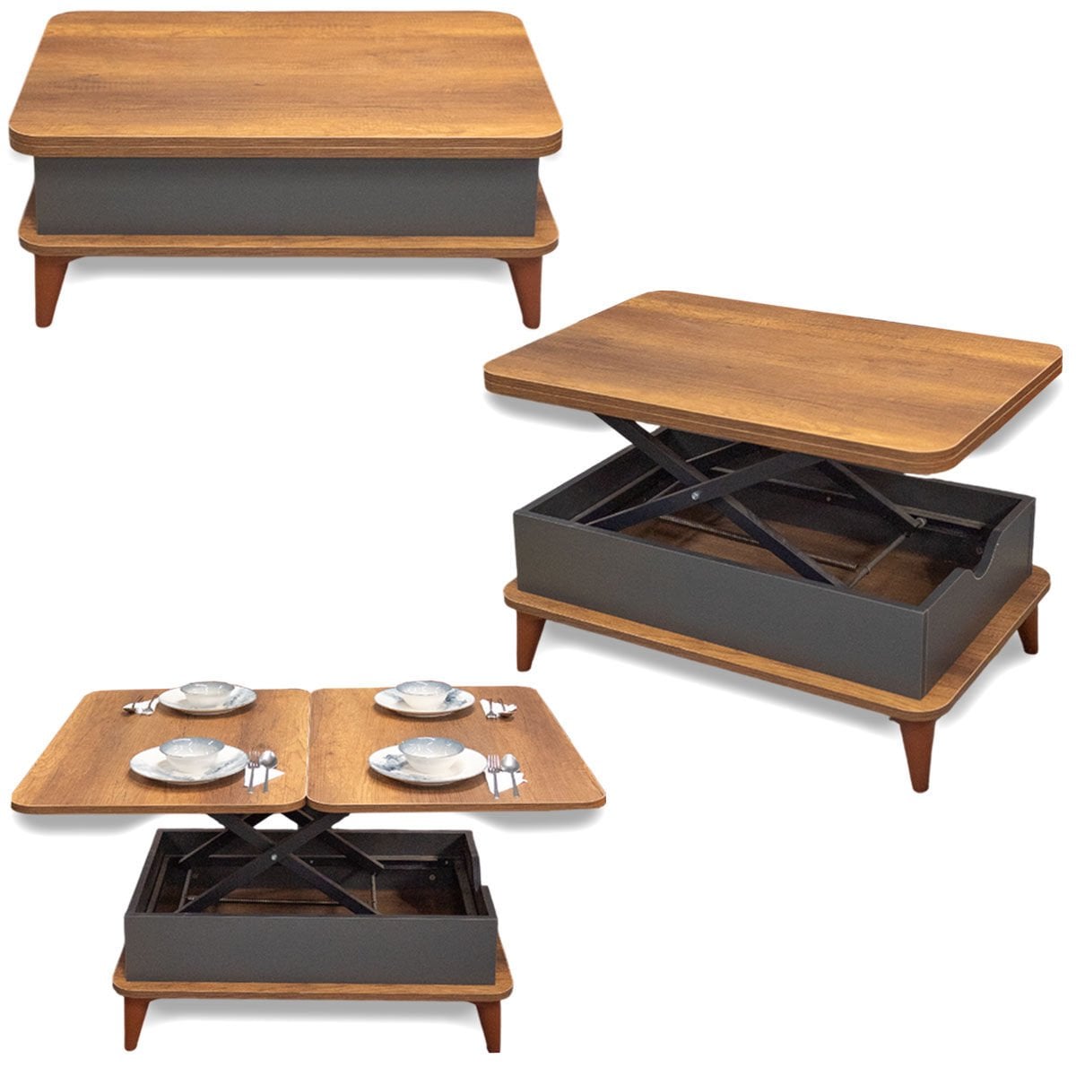 Smart Kademeli Sihirli Akıllı Sehpa Orta Sehpa Barok - Antrasit Sabit Ayaklı