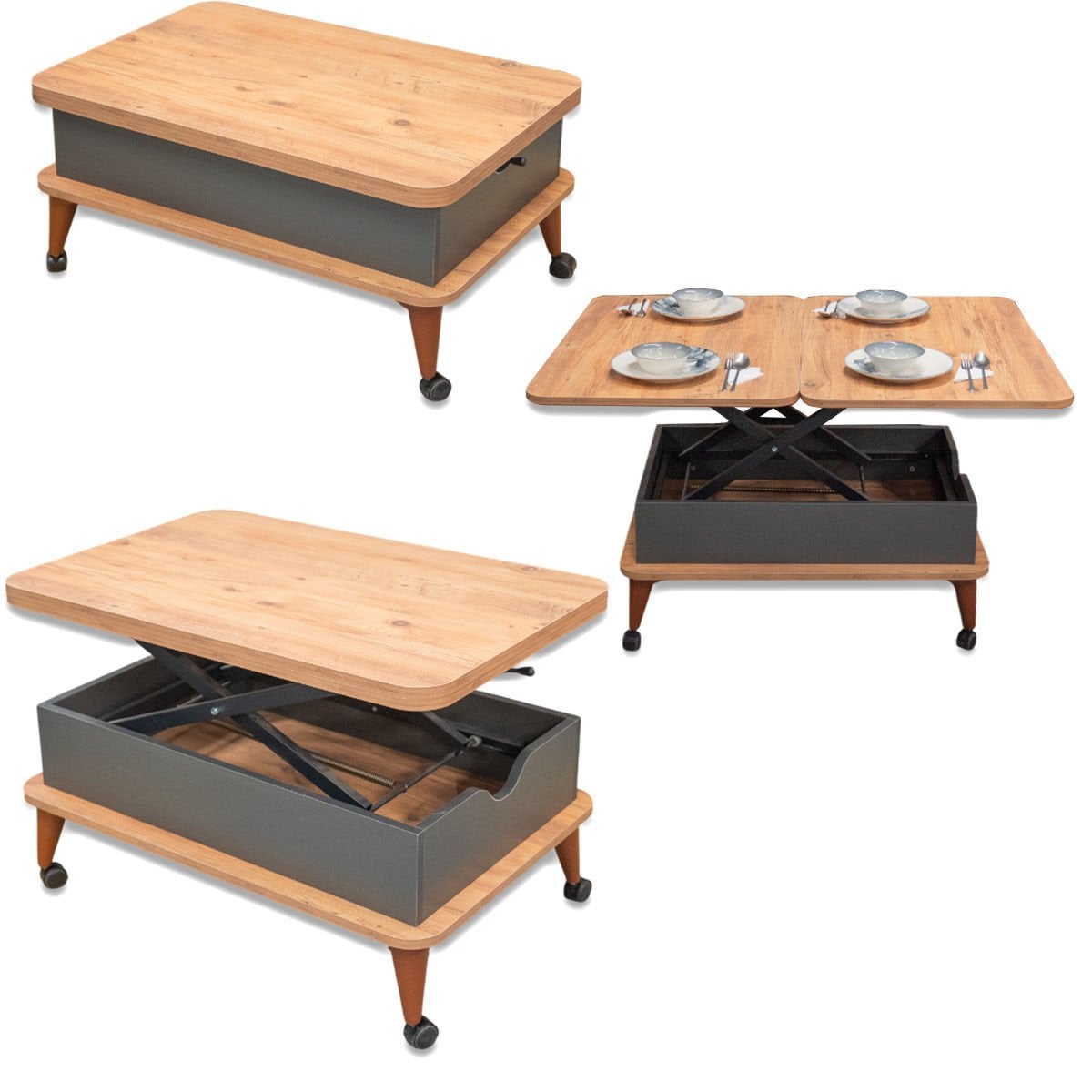 Smart Kademeli Tekerlekli Sihirli Akıllı Sehpa Orta Sehpa Atlantik Çam - Antrasit