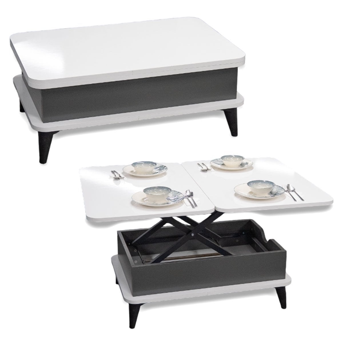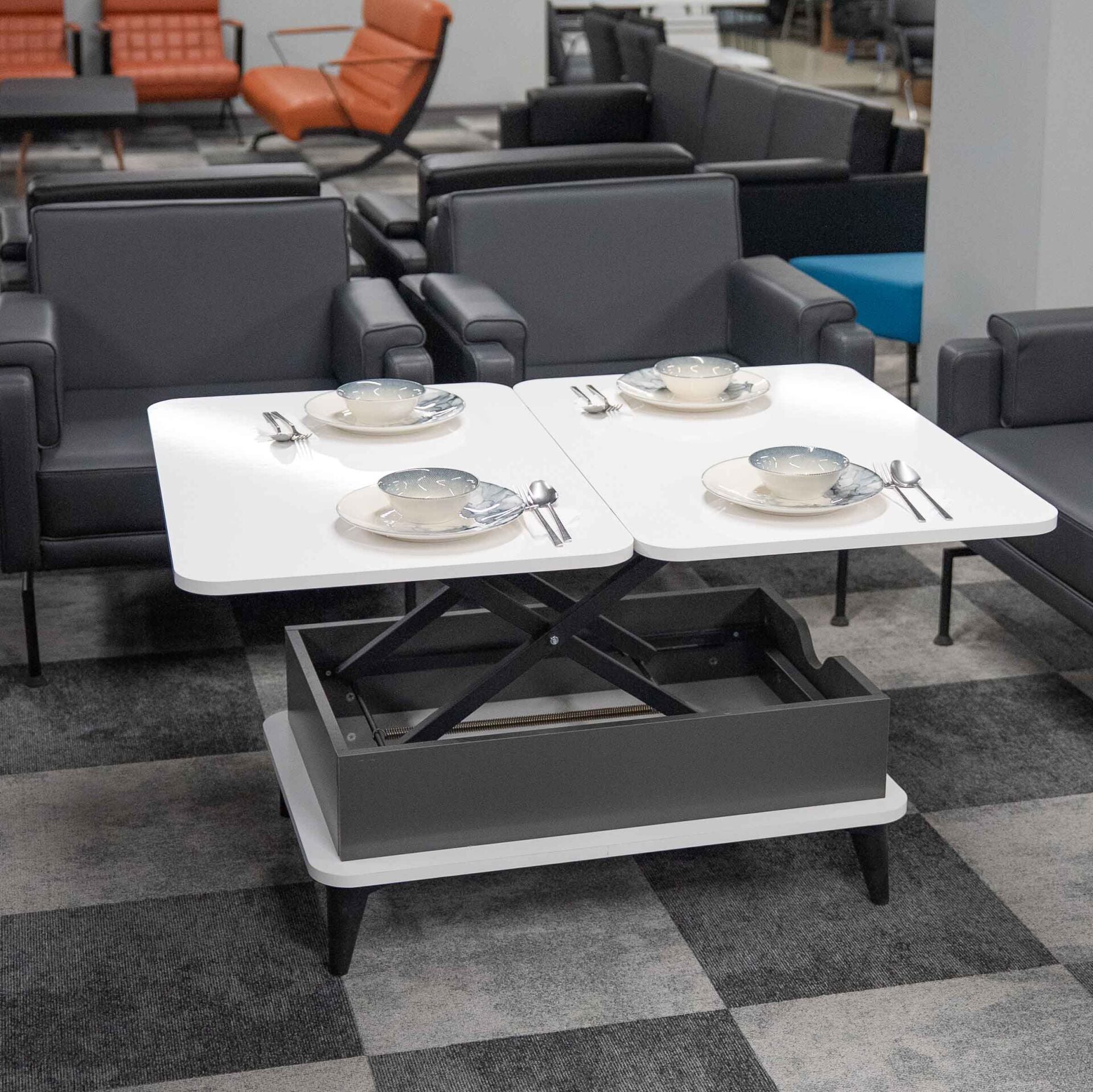 Smart Kademeli Sihirli Akıllı Sehpa Orta Sehpa Beyaz - Antrasit Sabit Ayaklı