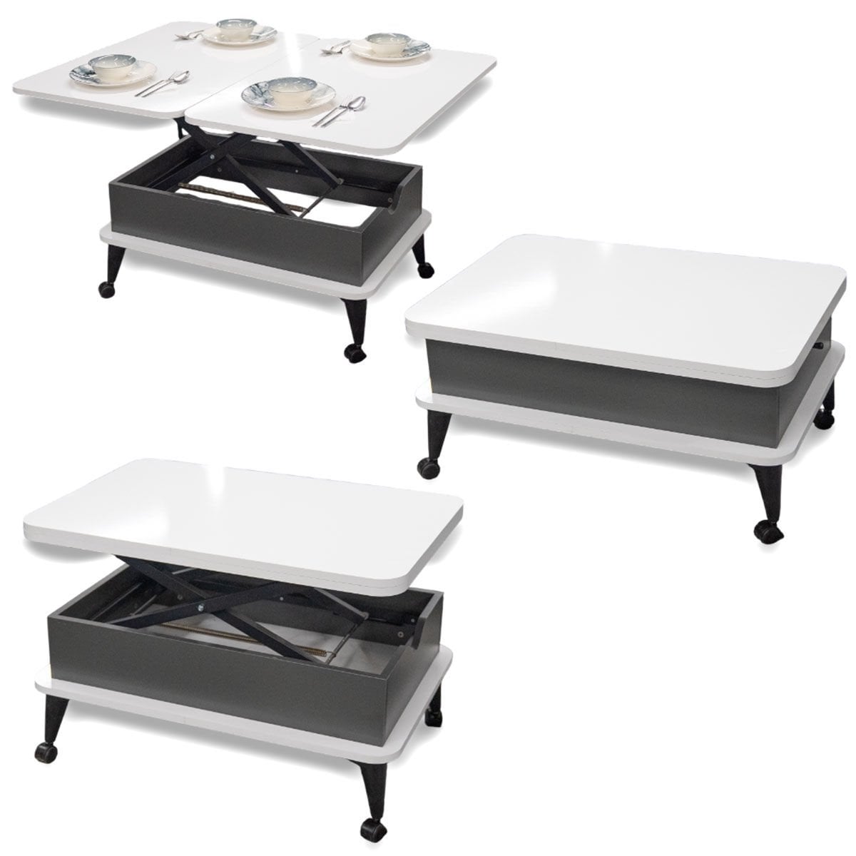 Smart Kademeli Tekerlekli Sihirli Akıllı Sehpa Orta Sehpa Beyaz - Antrasit