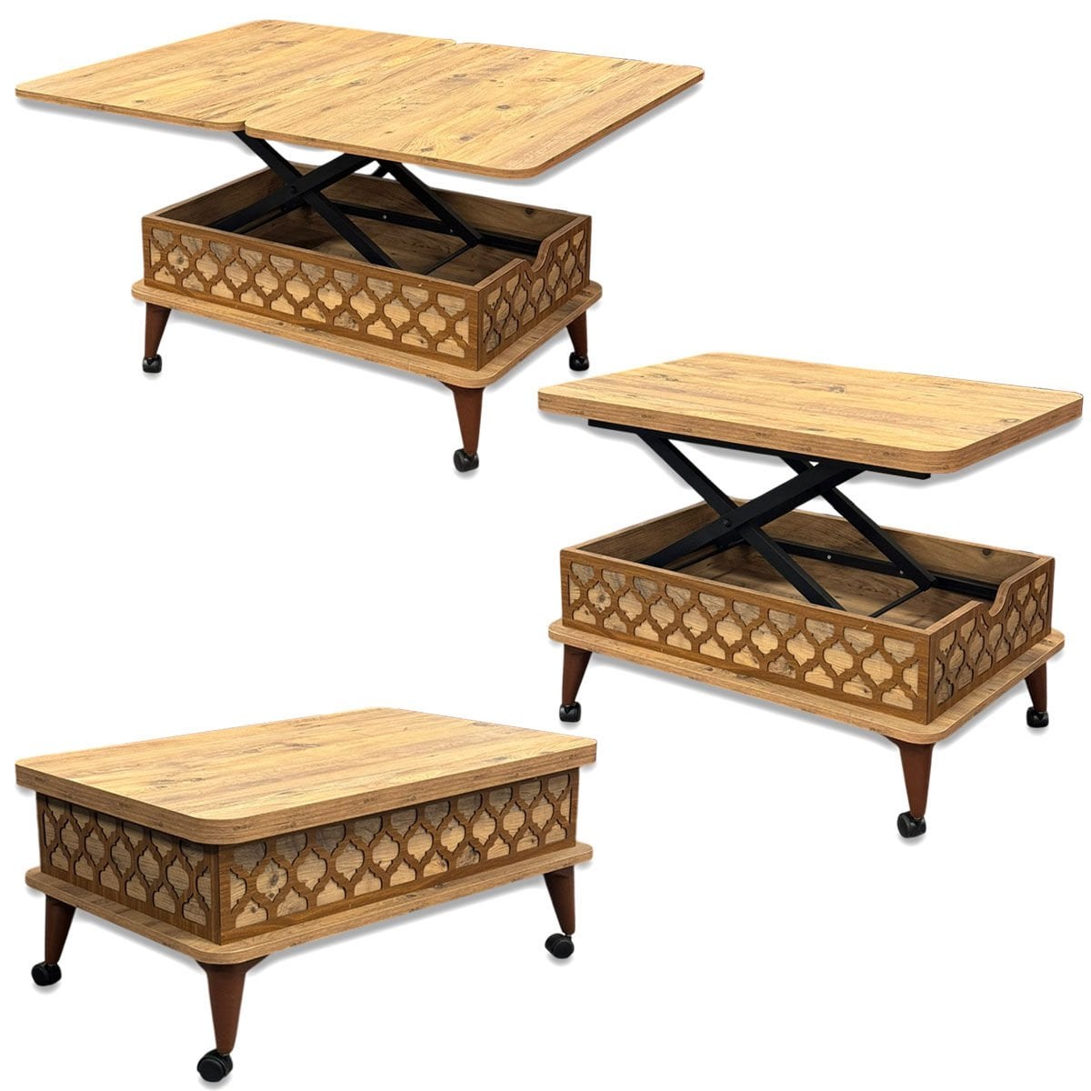 · Kolay Taşıma ve Hareket Ettirme: Sehpanın alt kısmındaki tekerlekler sayesinde istediğiniz yere kolayca taşıyabilirsiniz.
